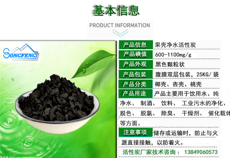 果殼凈水活性炭產(chǎn)品特征: